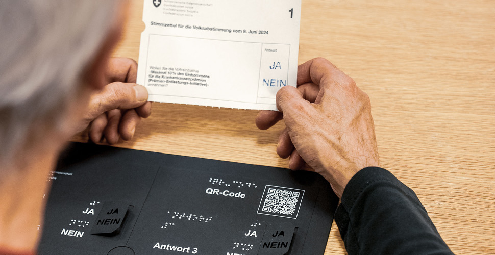 Informationen zur Einführung der Abstimmungsschablone für eidgenössische Vorlagen im Kanton Zürich Im Kanton Zürich können Stimmberechtigte mit Sehbehinderung oder Blindheit neu ihre Stimmzettel für eidgenössische Vorlagen selbstständig ausfüllen. Dies mithilfe einer Abstimmungsschablone, entwickelt von der Bundeskanzlei. Der Kanton Zürich geht bei deren Einführung als Pilotkanton voran. Erstmals zum Einsatz kommt die Schablone anlässlich der eidgenössischen Volksabstimmung vom 30. November 2025. Bereits zum zweiten Mal bietet der Kanton Zürich zudem die Abstimmungsinformationen für kantonale Vorlagen digital auch in Leichter Sprache an. Damit baut der Kanton Zürich den barrierefreien Zugang zu den politischen Rechten weiter aus. Fast drei von vier Menschen mit Behinderungen fühlen sich in der Politik nicht ausreichend vertreten. Das zeigt der Inklusionsindex von Pro Infirmis. Verschiedene Hürden erschweren ihnen den Zugang zu den politischen Rechten. Menschen mit einer starken Sehbehinderung oder Blindheit zum Beispiel benötigen beim Ausfüllen ihrer Stimmzettel Hilfe von anderen Personen. Sie können nicht geheim abstimmen. Das soll sich nun ändern: Bei der eidgenössischen Volksabstimmung vom 30. November 2025 kommt im Kanton Zürich erstmals eine Abstimmungsschablone zum Einsatz. Sie ermöglicht es Menschen mit Sehbehinderung oder Blindheit, die Stimmzettel für eidgenössische Vorlagen geheim auszufüllen. Funktionsweise und Bestellung der AbstimmungsschabloneDie Abstimmungsschablone ist eine wiederverwendbare Kartonschablone. Sie ist sowohl mit einer gut lesbaren Druckschrift als auch mit Brailleschrift bedruckt. Die Stimmzettel für die eidgenössischen Vorlagen werden an die Schablone angepasst. Zusätzlich zur Abstimmungsschablone gibt es je eine Gebrauchsanweisung in Druck- und Brailleschrift.Der Schweizerische Zentralverein für das Blindenwesen (SZBLIND) kümmert sich um den Vertrieb. Nutzende können die Abstimmungsschablone kostenlos beim SZBLIND bestellen. Dies ist via Hilfsmittelshop, Kontaktformular oder Telefon möglich.Kanton Zürich als PilotkantonDie Teilrevision des Bundesgesetzes über die politischen Rechte ist derzeit im Parlament hängig. Die Vorlage verlangt, dass Menschen mit Sehbehinderung oder Blindheit ihre Stimmzettel unter Wahrung des Stimmgeheimnisses selbstständig ausfüllen können. Zu diesem Zweck entwickelte die Bundeskanzlei in enger Zusammenarbeit mit dem B. Blinden- und Behindertenzentrum Bern und dem SZBLIND eine Abstimmungsschablone.Der Kanton Zürich führt als erster Kanton der Schweiz diese Abstimmungsschablone ein. In der Pilotphase kommt die Abstimmungsschablone vorerst nur für eidgenössische Vorlagen zum Einsatz. Der Pilotbetrieb läuft zusammen mit der Bundeskanzlei, dem SZBLIND und dem Statistischen Amt des Kantons Zürich. Betroffene Kantonalverbände unterstützen sie dabei. Abstimmungsinformationen in Leichter Sprache und Erklärvideos Seit September 2025 stellt der Kanton zudem die Abstimmungsinformationen für kantonale Vorlagen digital in Leichter Sprache zur Verfügung. So können alle Menschen gut informiert entscheiden, auch jene mit Lern- und Leseschwierigkeiten. Die Staatskanzlei arbeitet bei der Erstellung von Texten in Leichter Sprache eng mit dem Vereinmensch-zuerst schweiz zusammen. Die Informationen in Leichter Sprache sind auf der kantonalen Webseite sowie auf der VoteInfo-App zugänglich. Ein Link und ein QRCode in der Abstimmungszeitung verweisen auf die entsprechende Webseite. Diese Inhalte ergänzen die bereits seit Jahren bestehenden Erklärvideos zu kantonalen Vorlagen in Einfacher Sprache und in Gebärdensprache.Mehr zum Thema Webseite der Bundeskanzlei mit Informationen zur Abstimmungsschablone Webseite des Kantons Zürich mit Informationen zur Abstimmungsschablone Hilfsmittelshop SZBLIND Website des Kantons Zürich mit Informationen zu kantonalen Abstimmungen in Leichter Sprache sowie Erklärvideos